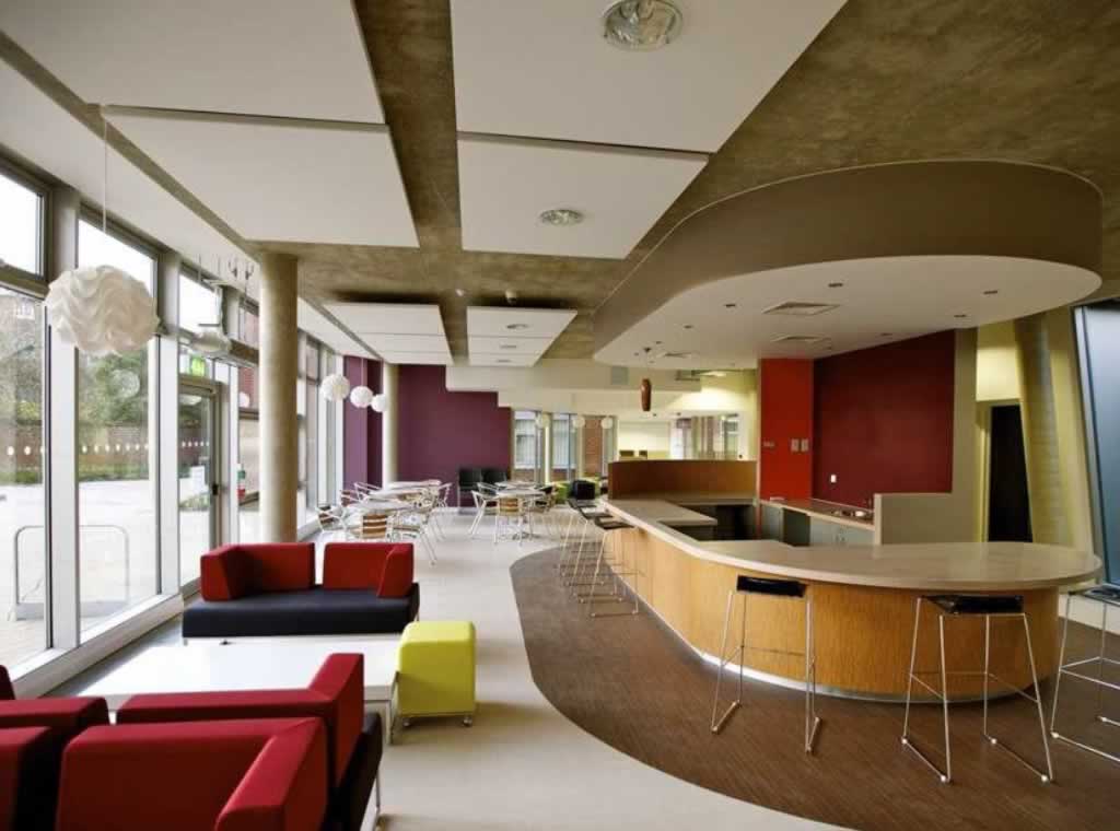 The innovative and aesthetically pleasing Decofon Poise Range of frameless acoustic ceiling clouds are manufactured from stone wool fibres, offering superb sound absorption.