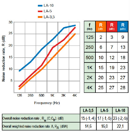 | Global weighted A sound reduction index, RA: (dBA) | 14.6 | 16.0 | 22.1 |