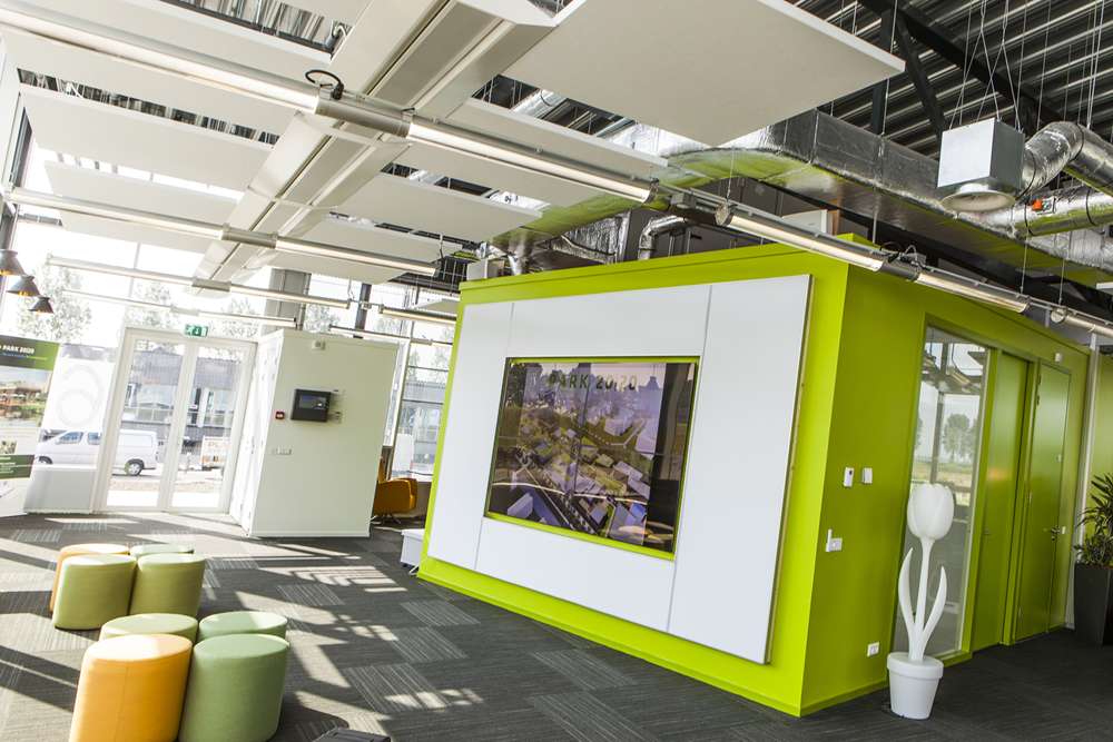 Rockfon Eclipse is an acoustic island made of a 40mm thick stone wool panel. The visible side is covered with a painted glass fleece creating a nice smooth white surface. The back side of the island is covered with a white acoustical fleece providing excellent light and heat reflection. The edges are painted.