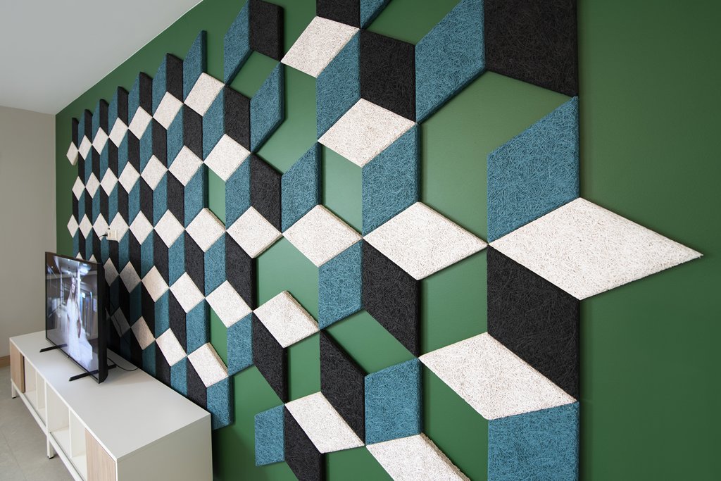 Wood Wool design tiles is a new direction and proof of wood wool versatility and aesthetic features, while substantially improving interior acoustics.